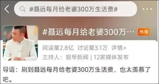 前阵子“聂远每个月给老婆300万生活费”登上热搜,全网沸腾。