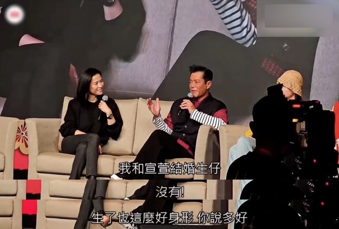 他们今年 53 岁,都没有结婚,绯闻总传他俩秘密结了婚。一个活动里,古天乐澄清,没有和宣萱结婚生仔。宣萱也开玩笑调侃,生了也这么好身形,也太好。