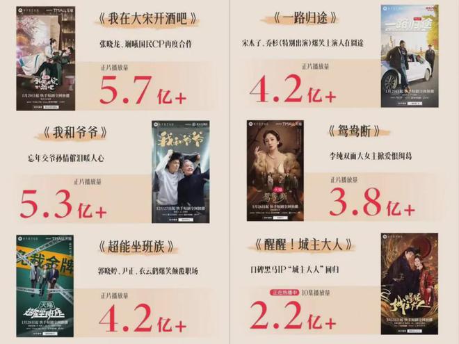 其中,《我在大宋开酒吧》《我和爷爷》《超能坐班族》《鸳鸯断》等短剧,分别斩获5.7亿、5.3亿、4.2亿、3.8亿的播放量,《我在大宋开酒吧》全网热搜34个,相关话题曝光超9.9亿;《超能坐班族》获微博认证短剧首个微博站内爆款单条。