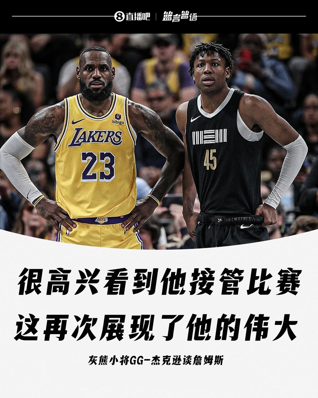 赛后,灰熊球员GG-杰克逊接受了记者的采访,并谈到了詹姆斯。杰克逊说:“詹姆斯对我们的表现很生气,这太有趣了,他开始在球场上说。”