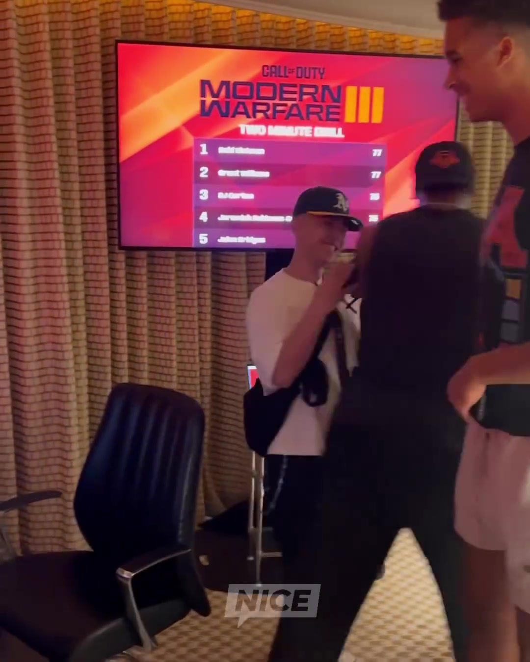 7月16日讯 湖人球员布朗尼·詹姆斯今天在拉斯维加斯参加了使命召唤游戏。