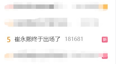 比赛期间,“崔永熙终于出场了”的词条也登上了微博热搜。