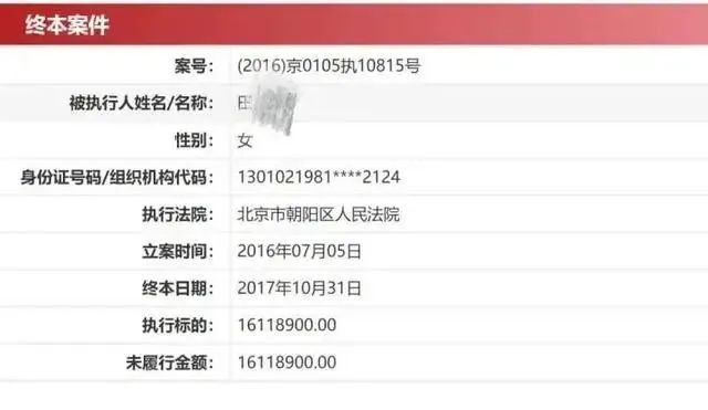 案件流程显示,2016年7月,该案件首次执行。此后,田笑蜜及其与朱丹共同经营的北京品诚悦汇文化传播有限公司被列为失信被执行人,并被限制高消费,该案也被列为终本案件。