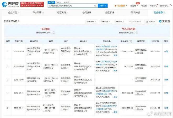 7月17日,据天眼查法律诉讼信息显示,近日,朱丹好友田笑蜜新增一则恢复执行信息,执行标的1611万余元,涉及朱丹与其相关合同、无因管理、不当得利案件,执行法院为北京市朝阳区人民法院。