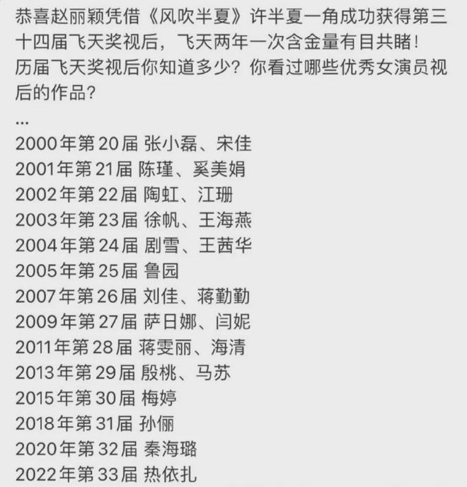 如今,她已手握金鹰奖、飞天奖,大满贯之路指日可待。