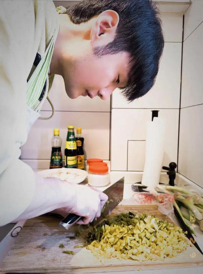 忙碌一年的两人终于有时间一起买菜、做饭、包饺子。