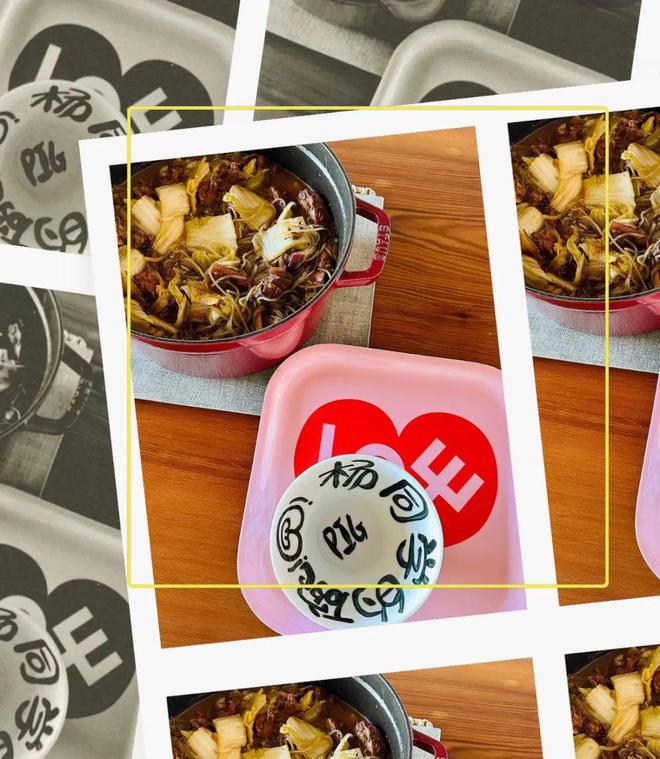 她会用李荣浩逛街给她买的碗吃饭,上面刻着「杨同学的饭」几个字,有趣又宠溺: