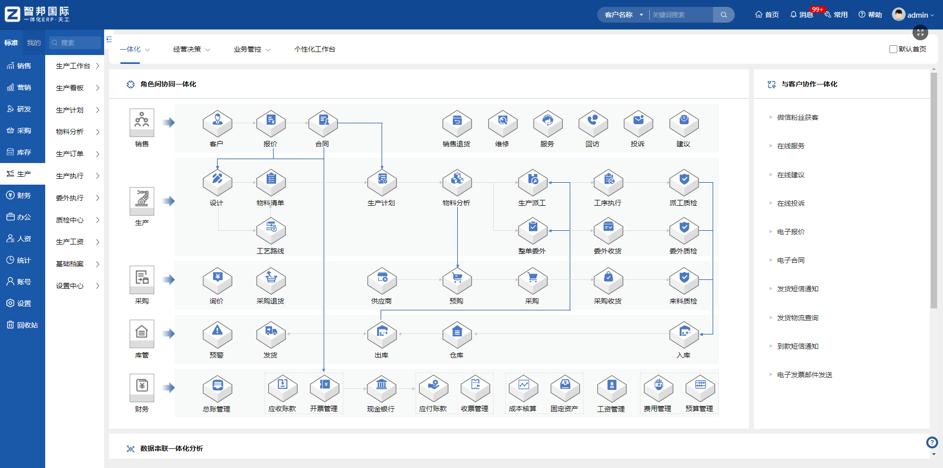 制造企业是智邦国际合作的主要行业类型,“天工系列”则是基于智邦国际对于制造企业的了解,为制造企业量体裁衣,打造的数智一体化管理平台。“天工系列”从根源入手,解决了制造企业业务与财务的衔接问题,从采购到生产、从销售到出库,以数智化全面赋能企业管理,并根据制造企业的管理难点,进行针对性发力,助推企业从容面对市场变化,始终稳立行业之巅。