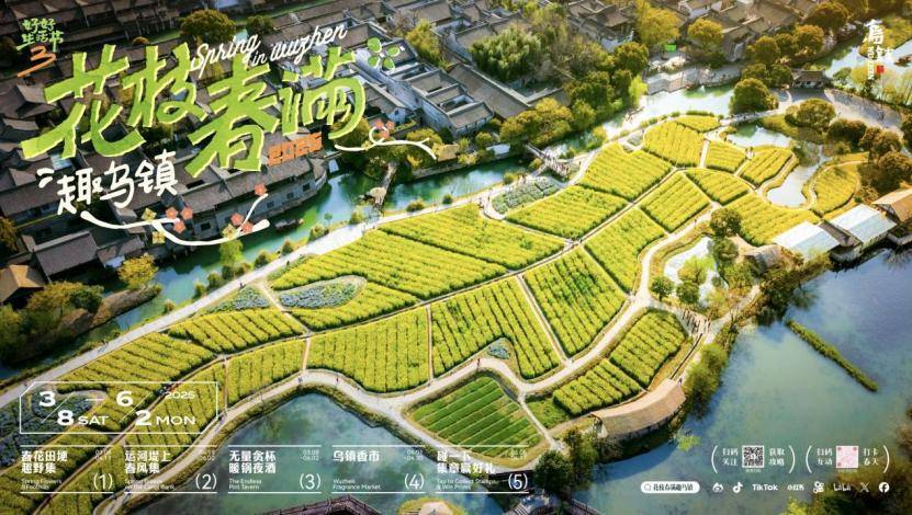春意渐浓,江南水乡乌镇迎来年度文旅盛事。3月8日至6月2日,"乌镇好好生活节"第三季"花枝春满趣乌镇"正式启幕。活动以"浪漫、治愈、在地、戏剧、烟火、差异"六大春日感官体验为核心,串联妇女节、清明、劳动节三大节假日,推出五大主题板块活动,为游客打造沉浸式江南春日盛宴。