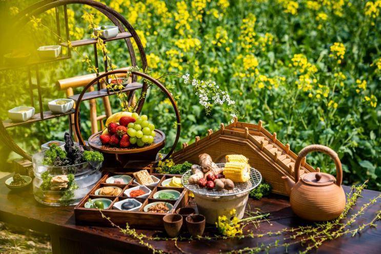 3月8日,值此国际妇女节之际,春花田埂趣野集在龙形田绚丽启幕,活动将持续至4月13日,此次活动巧妙地将赏花、休闲与市集融为一体。在龙形田金色油菜花海之间,游客们漫步其间,不仅可以拍照打卡,还可以在听风阁内的早来春茶馆中沏一壶春茶,或是在花伴咖啡屋的窗边静赏花海,让心灵得到宁静与放松。后街酒家乌镇特色野火饭也是值得体验,团队游客可以在这里开启一场春日沉浸式露营体验,在户外的烟火气息中,感受传统美食的独特魅力。