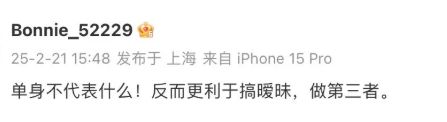 黄景瑜前妻发文疑似回应黄景瑜近期争议,“单身不代表什么!反而更利于搞暧昧,做第三者。”