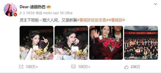 翻看迪丽热巴的社交账号可知,她在2月3日发布了《慕胥辞》杀青的动态。