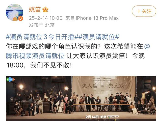 先是高调官宣自己要参加综艺《演员请就位3》,从去年底开始就连发数条微博,造势打call。