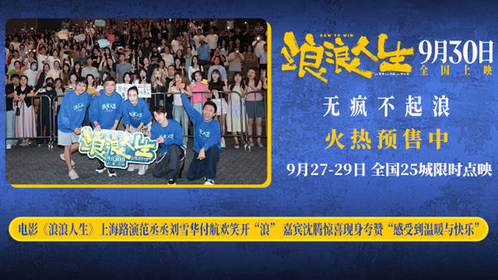 电影《浪浪人生》将于9月30日全国上映,9月27至29日在全国25城开启超前限时点映,正在火热预售中。