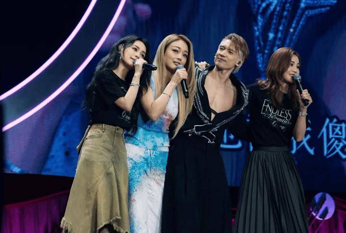 之后“龙虎豹”组合成员容祖儿与Twins一同上台,三人与关智斌合唱经典歌曲《死性不改》。容祖儿再次被关智斌的努力打动,抱着他当场哭了出来,四人瞬间变成“哭包天团”,阿Sa还调侃“祖儿在后台就已经开始哭了”。台上,容祖儿、阿Sa、阿娇三人更是毫不客气,不停摸关智斌的腹肌和屁股,还试图解开他的外套,场面搞笑。