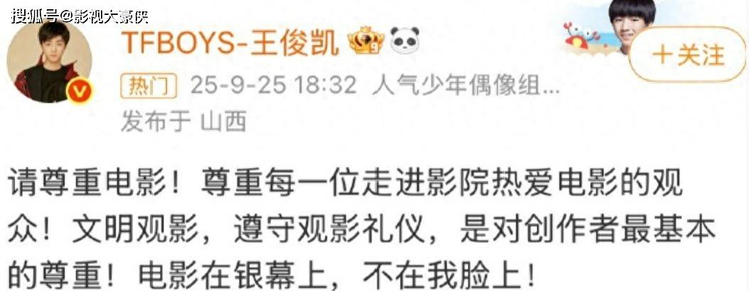 王俊凯在平遥电影节上怼不文明拍摄行为,远比那些只是象征性的发一些公告的人更有号召性,更能引起人的关注。