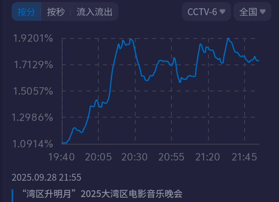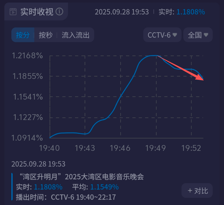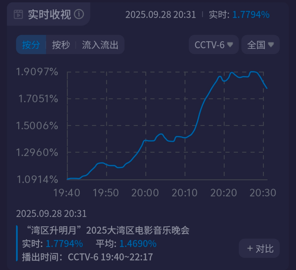 2025大湾区电影音乐晚会收视出炉了!似乎有点不及预期。