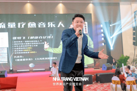 活动正式开场时,越南芽庄文旅局陈主任代表越方领导致欢迎辞,世界美业联合会主席曦晴代表中方致辞,随后中越盛典演唱会正式开唱。本次盛典由中国知名主持人晓唯主持,华语乐坛女歌手张莎莎、百亿流量疗愈音乐人、中国大陆知名男歌手音乐人张绍飞(艺名:张浚哲)等大咖出席,值得一提的是,演唱会行程过半时,张绍飞登台并演唱了《健康最珍贵》《大风吹倒梧桐树》等多首脍炙人口的作品,将演唱会推向高潮,引发全场好评,掌声雷动。