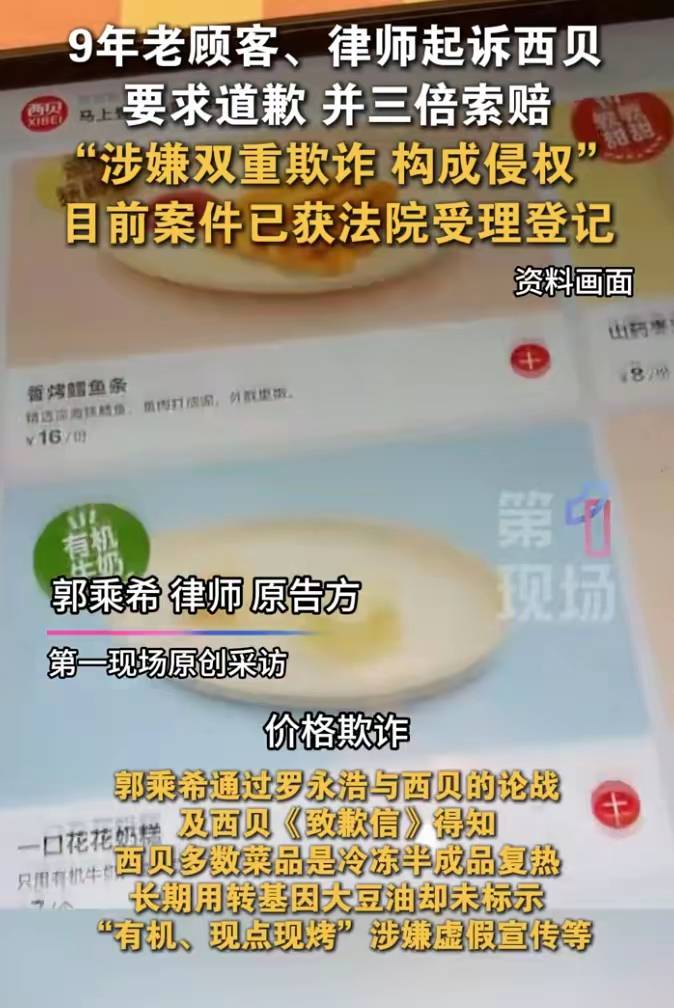 谈及提起诉讼的原因,郭乘希表示,她通过罗永浩与西贝的网络论战及西贝发布的《致歉信》得知,西贝多数菜品实为上游供应商生产的冷冻半成品复热而成。
