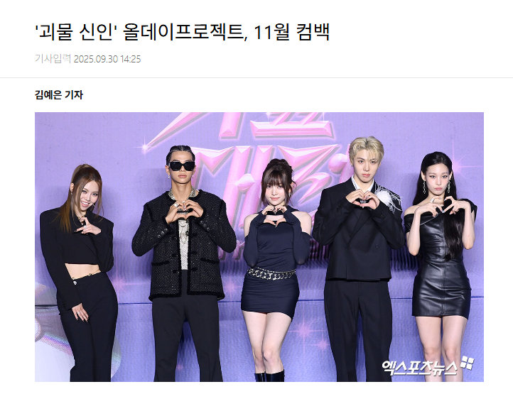 据30日Xportsnews的采访,ALLDAY PROJECT正以11月回归为目标,忙于准备中。