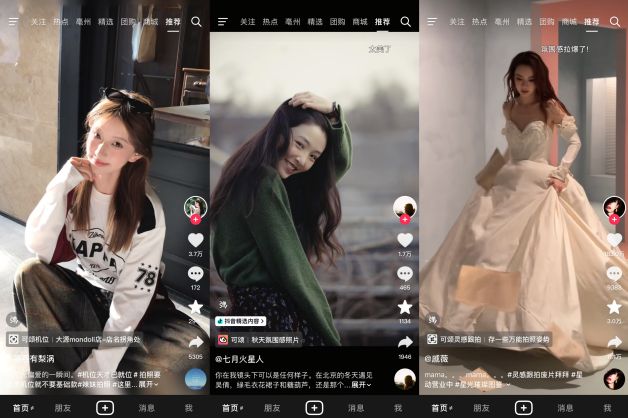 “推荐”列表中的内容由系统根据用户的爱好自动推荐,“关注”列表则会展示用户关注的创作者所发布的内容,内容形式以图文及视频为主,主要来自抖音APP和可颂APP用户创作的内容。