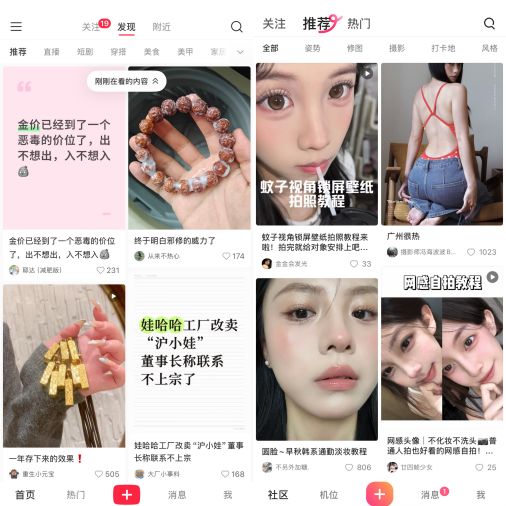 从解决拍照不会摆姿势、对象拍照技术差这一即时刚需小切口出发,沿着“工具到社区”的路径,迂回找到了一条兼具工具性与社区性的中间道路,从而实现种草的目的。
