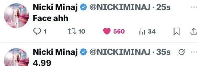 30日,“麻辣鸡”Nicki Minaj和“卡迪碧”Cardi B在社交平台公开互撕。两人互甩黑图,互飙脏话。麻辣鸡讽刺卡迪碧新专“大甩卖”,卡迪碧喊话麻辣鸡和同时期出道的蕾哈娜、霉霉等人比比:“你出道的时候我还在上高中,你到底在跟我比什么?”