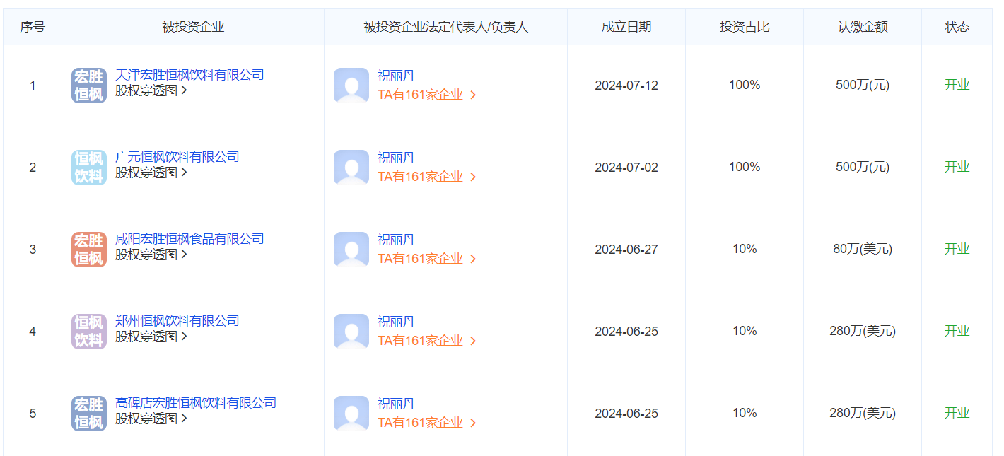 不过,祝丽丹的最新职位是宏胜饮料集团管理中心总监兼人力资源部部长,并且在158家公司担任法定代表和高管,其中就包括宏胜饮料集团。