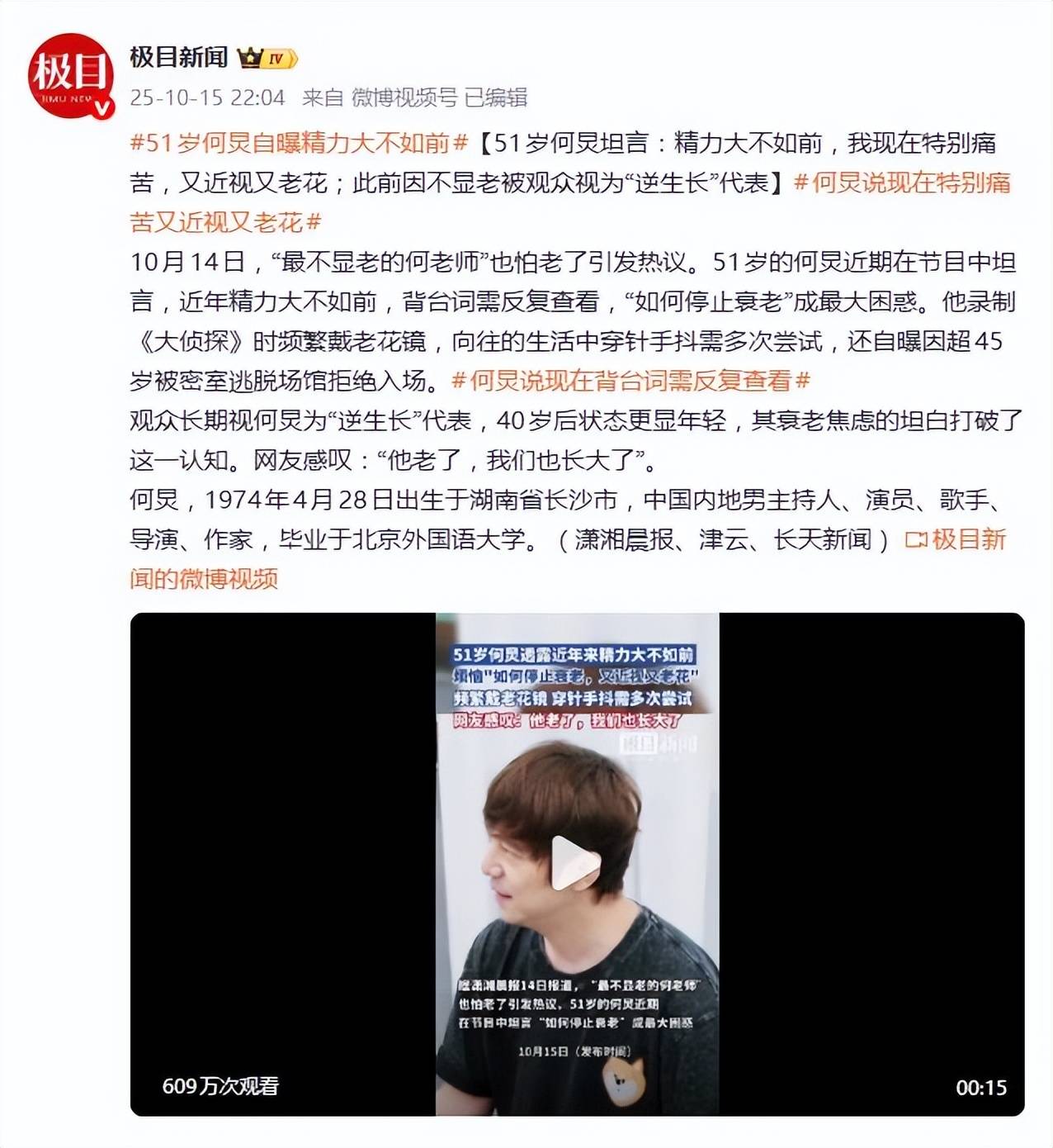 这场围绕“衰老”的风波,至此彻底反转。它不再是一个关于年龄与状态的焦虑剧本,而成了一个关于如何用爱与专业对抗时间的最佳范本——何炅用他一如既往的清醒与温暖证明,真正的年轻,从来与皱纹无关,只与心态和热爱相连。