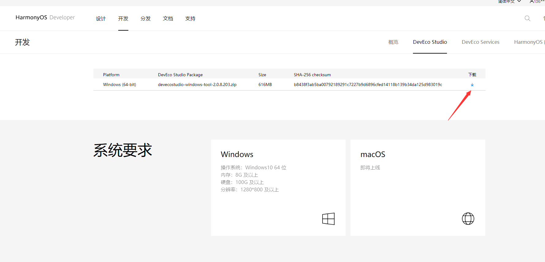 首先,现在这里下载DevEco StudioIDE,目前只有win版,mac版也快了,别催了别催了