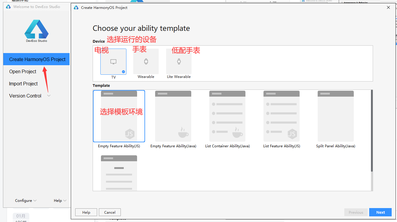 这里咱创建一个Java的小TV,Template选择Empty Feature Ability(Java)了