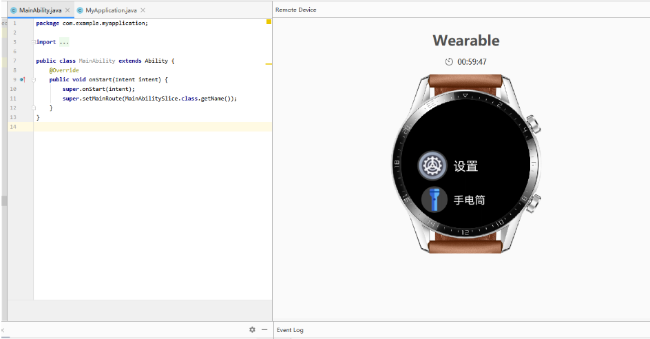 因为没有实名认证华为开发者,想要认证的在这里即可实现,会有设备虚拟机模拟运行,和IOS开发一样,代码旁边会有TV或者手表的实时显示效果