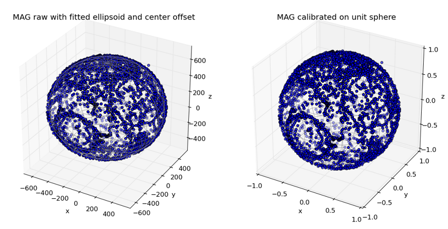 完成本节开头准备工作,之后将飞机绕着所有轴缓慢旋转,保证磁力计已经在整个球面(如图所示)获取到了采样测量值。