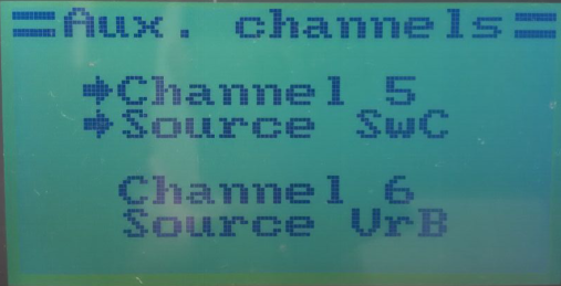 每个遥控器四个最基本的指令是THROTTLE(油门)、YAW(偏航)、PITCH(俯仰)、ROLL(横滚),对应了左右两个摇杆。其余的可以视为辅助通道。在遥控器可以设置剩余通道对应的拨杆或者旋钮。在Radio配置文件中对应为: